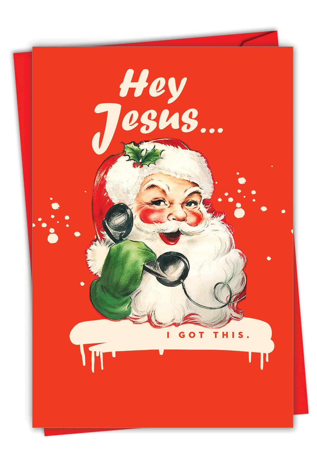 Amazon Com Nobleworks Hilarious Merry Christmas Card With Envelope 4 63 X 6 75 Inch Funny Retro Happy Holidays Greetings Card Hey Jesus C6684xsg Office Products